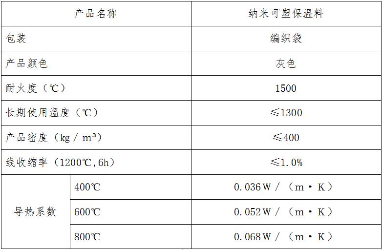 1、保温性能:我公司研发的纳米可塑保温料为新型纳米材料,密度为400kg/m³,环境温度为400℃时导热系数为0.04W/(m·K),其保温性能是传统硅酸铝纤维毯的三到四倍。